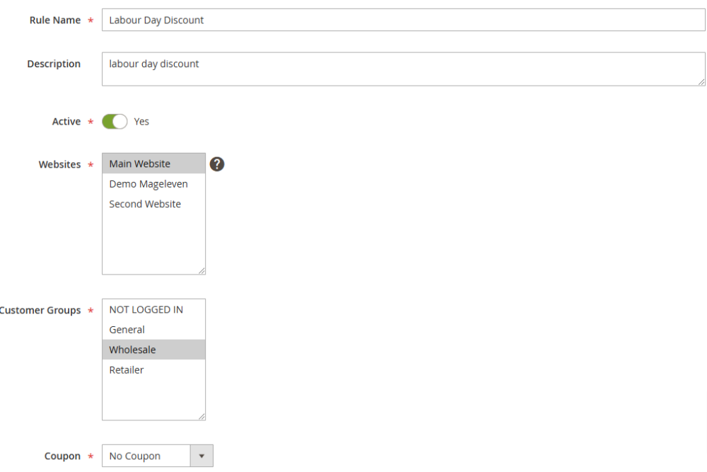 - Rule Name: Provide a name that describes the discount (e.g., "Summer Sale 10% Off").