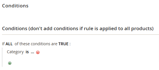 - Specify the conditions for the rule. For example, apply the rule to products in a specific category or with certain attributes (e.g., brand, price range, or SKU).