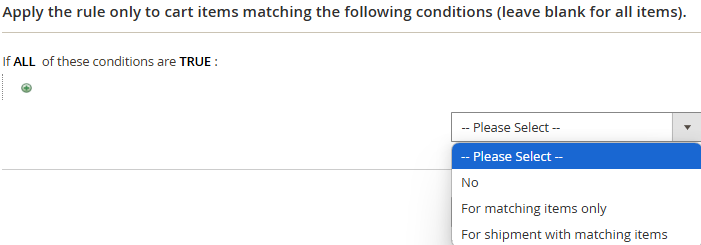 - Under Actions, set Free Shipping to For Matching Items Only or For Shipment with Matching Items based on your preference.